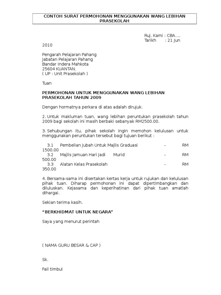 05 April 2016 TuanPuan KEBENARAN UNTUK MENGGUNAKAN DAN MENGUSAHAKAN TAPAK TANAH Merujuk kepada perkara di atas saya Penama No. Contoh Surat Benarkan Menguna Penuntukan. 15 Contoh Surat Pengajuan dengan Penulisan yang Baik dan Benar - Jika diartikan secara sederhana maka surat pengajuan merupakan sebuah jenis surat yang digunakan untuk mengajukan permohonan atau permintaan kepada pihak lain.